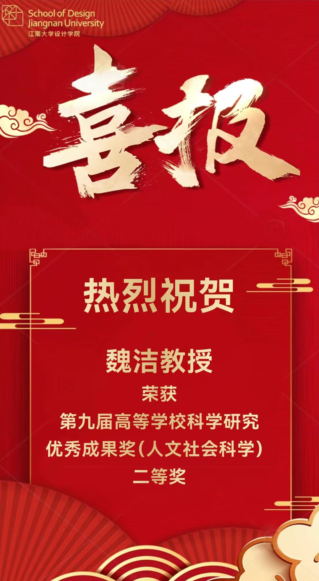 喜报!我院魏洁教授荣获第九届高等学校科学研究优秀成果奖(人文社会科学)二等奖!