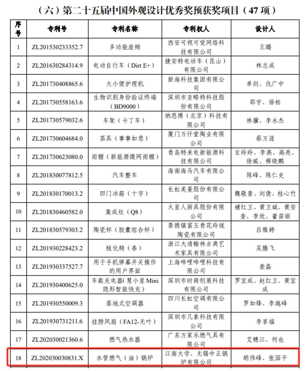 日前,第二十五届中国专利奖评审结果公布,h动画 胡伟峰教授的“水管燃气(油)锅炉”外观设计专利荣获中国外观设计优秀奖。这是我校外观设计专利首次荣获中国专利奖,实现了新的突破