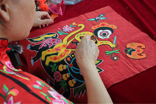 文创设计作品展,为延川剪纸、布堆花非遗传承人展示了h动画