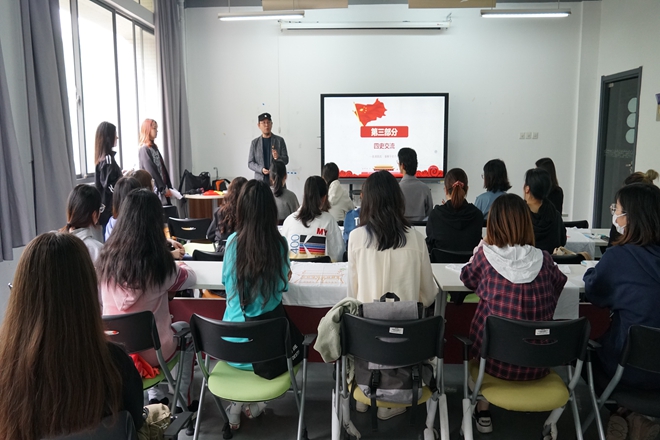 副院长潘春宇、分团委书记吴雨琛、辅导员于乐参加本次党史学习活动。活动由团支部书记吴晓博和副书记牛艺诺共同主持。