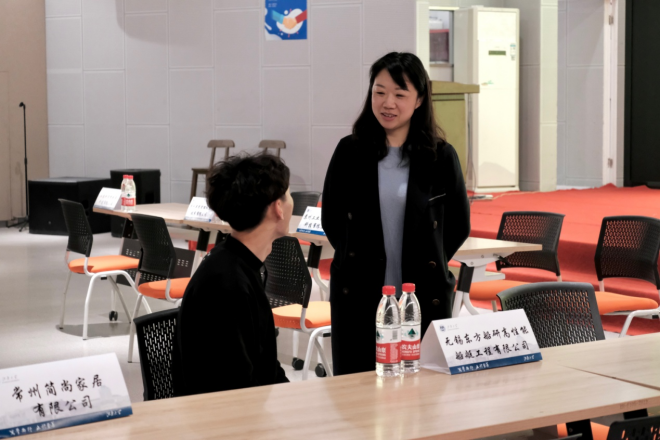 副书记王晖来到招聘现场,就设计人才需求情况和毕业生发展情况与招聘企业深入交流探讨。江苏逐日纺织集团HR杨玲莹表示:作为企业对设计学子求贤若渴,企业的发展离不开人才的支撑,设计学子专业技能扎实,期待更多的毕业生进入企业,与企业一同发展。江苏科学梦创展科技有限公司HR邓伟表示:企业里多年来招收了不少h动画