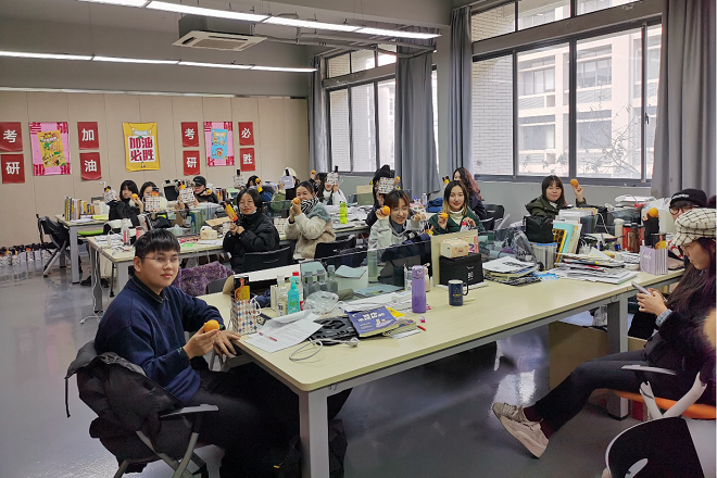 学院全方位、多措施为考研学生提供良好环境和便利条件,专门开设24小时考研自习教室,保障空调供应,邀请考研成绩较好的同学进行经验分享。举行考研慰问活动、考研心理辅导等一系列活动,使得同学们感受到了学院的人文关怀,同时更加坚定考研信心。随后,学院领导为同学们分发精心准备的考研加油包,愿同学们考出理想成绩,最终结果“橙”心如意!慰问活动暖人暖心,不仅在寒冷冬天为考研学生送来温暖,而且带来信心和力量。产品设计专业廖望同学表示,h动画