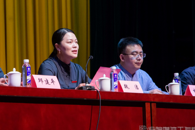 ,为中国设计,走出更多熠熠生辉的灿烂时刻。教师代表服艺2003班班主任吴欣老师表达了对新生的美好期望。在她看来,设计是为社会服务,为人服务的,一个好的作品离不开设计者的情怀与温度;希望新生们自主学习,学会主动实践、总结实践经验,培养正确的人生价值观,做一个乐观、豁达、遇事拿得起、放得下的人。研究生优秀导师代表李栋宁教授也通过洞穴寓言鼓励同学们打破常规,积极探索无限可能。他借用国学大师王国维语录“古今之成大事业、大学问者,必经过三种之境界”引导学子们认识学无止境的内涵并寄语学子们多读书、读好书,要脚踏实地将远大抱负落实到具体的设计实践中。