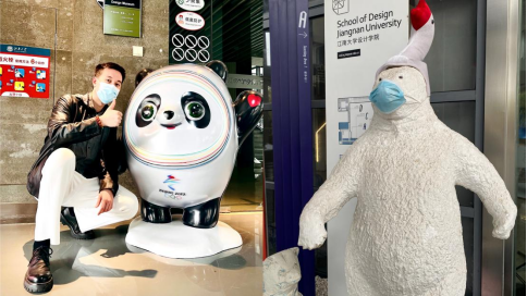 “设计楼也有冰墩墩,大白熊也戴上了口罩”