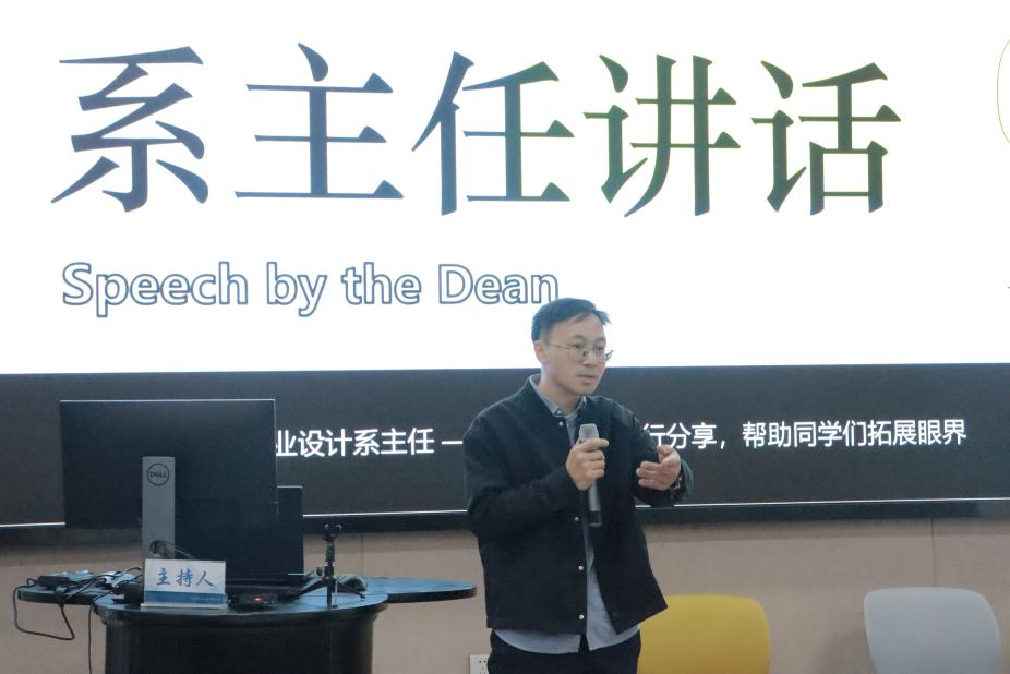 活动伊始,工业设计系系主任梁峭老师上台致辞。梁老师用平易近人的语言,悉心关照了大一新生,并就专业学习中的各种问题给予指导。他强调了工业设计在创新、用户体验、可持续性等方面的重要性,并指出工业设计与其他学科的交叉融合如人工智能、机械工程等十分关键,希望同学们注重拓宽知识视野,增强跨学科合作能力。他鼓励学生们注重积累、勇于尝试,以长远的设计师眼光看待自己的未来发展,表达了对同学们的殷切希望。
