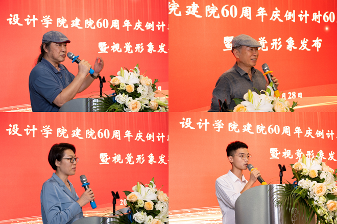 校长特别奖获得者、校十佳大学生、设硕2003肖磊作为学生代表讲述了自己选择江南的初衷,分享了本科和研究生阶段的学习成长和奋斗经历,并号召全院学生传承青山精神,坚守设计责任,从学院艰苦奋斗的建设历程中汲取“设计初心”的力量,以实际行动践行青年使命与担当。教师代表、环境艺术设计系朱蓉教授回顾了自己从1994年入读青山湾校园,到毕业后回到母校,执起教鞭的成长历程。她表示,将继续保持设计教育初心与理想,做好学院蓬勃发展的基石。校友代表、原南京艺术学院副校长、型81级校友何晓佑教授在讲话中深情回忆了当年在学校的求学过程,分享了作为h动画