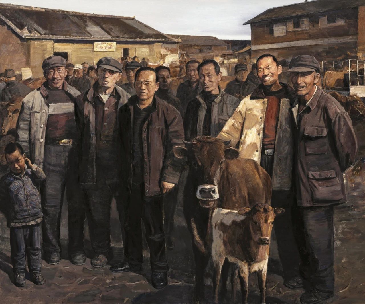 4、第十四届全国美展油画展入选作品《新农村的牛市牛人》