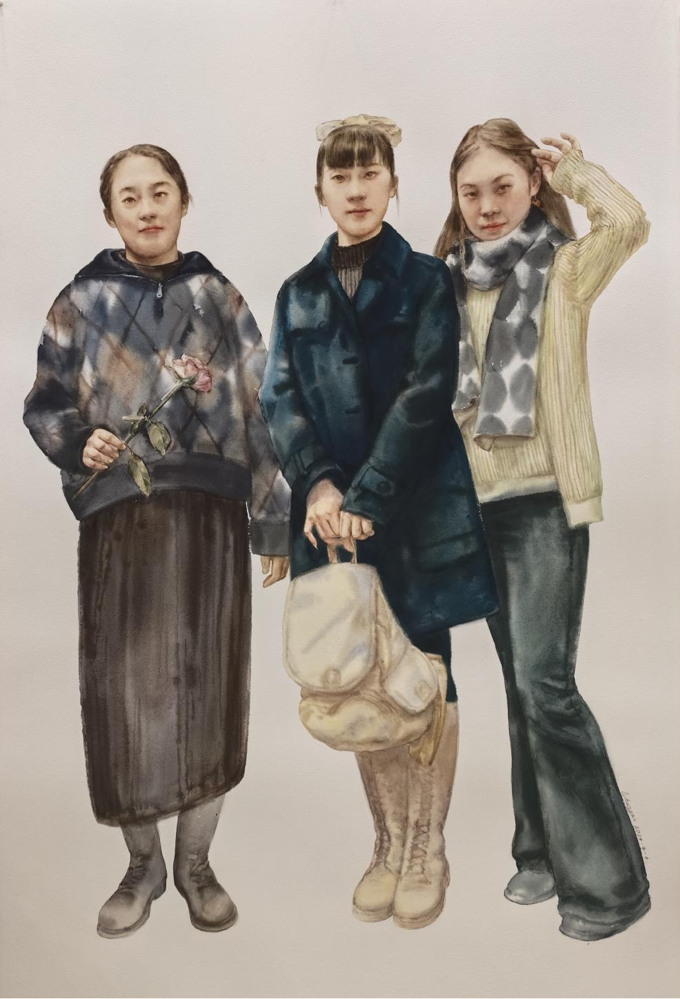 学生新时代的年轻面孔和青春洋溢的精神面貌。水彩的柔和质感与丰富色彩让整幅作品充满了生机和活力;作品在水彩人物画表现上进行了大胆的尝试,运用了中国画的线条,平面式的主观处理,作品不仅彰显了水彩的水色淋漓,同时作者进行了中西融合,将墨色运用于水彩之中,赋予了作品一种独特的情感表达方式。每一笔都用心描绘,传达出对青春和创造力的理解。作品中的清新氛围象征着无限的可能性和梦想的追逐,让人仿佛置身其中,感受到h动画