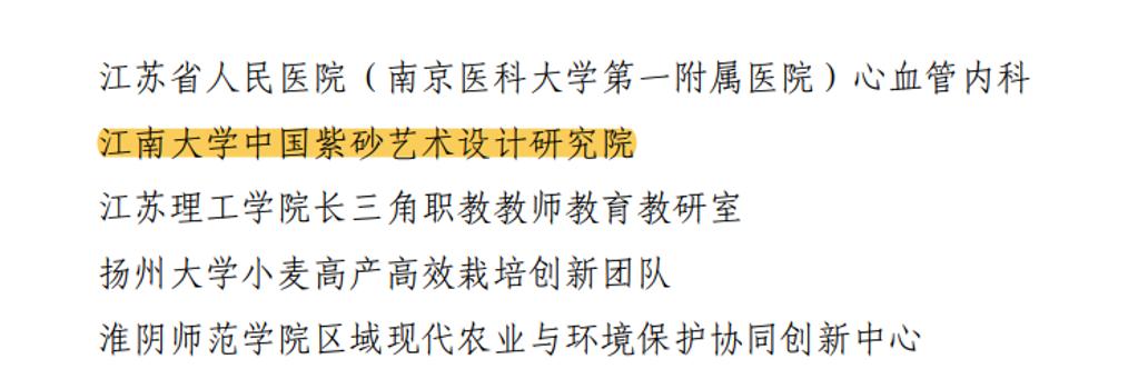 设计学A+学科平台和中国“陶都”宜兴得天独厚的紫砂资源,研究院获批“江苏省高校社科普及基地”“中国工业设计协会创新设计研究院”称号等。