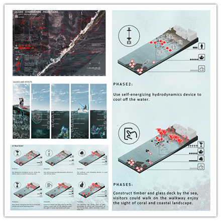 学生刘晨带队、海南大学张宇、山东农业大学于鹏程、河北工业大学张耀元、北京林业大学董明哲、东北林业大学尚雅婕、西安建筑科技大学吴树捺共同完成的作品《coral winter-城市性别大观》获得一般设计类别优秀奖。