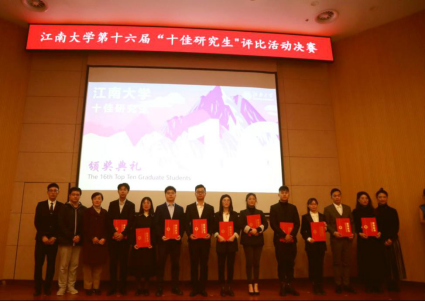 第十六届“十佳研究生”决赛在商学院远东报告厅举行,我院李雪同学、刘胜和同学获得“十佳研究生”荣誉称号。本次评选11月开始,全校同学通过院荐和自荐两种方式参与评选,经过材料审核、线上投票,共15名候选人脱颖而出,成功入围决赛。决赛分为风采展示和专题问答两个环节,李雪同学以“用坚持唤醒产业 用设计温暖人心”为题,讲述自己关注“毒校服”事件后,在导师指导下带领团队深入探究产业结构、推动产业转型的故事,同时分享了自己就利用专业所长服务企业、结合专业特色创新创业的经历。专题问答环节,李雪同学针对互联网与数字化背景下的线上消费问题发表见解。刘胜和同学以“设计点亮公益”为题,分享自己进入研究生学习以来参与的多个公益项目,从土地荒漠化治理到非洲儿童教育问题,刘胜和同学坚持通过参与公益设计培养自己做为一个设计师的社会责任感,切实践行笃学尚行,止于至善的江南校训。在专题问答环节,刘胜和同学结合自身实践,讨论了当代大学生如何肩负引领中国科技进步的使命。两位同学现场答辩引人入胜,分别以总分第一、第四的好成绩入选十佳。