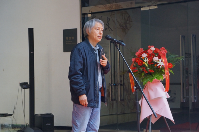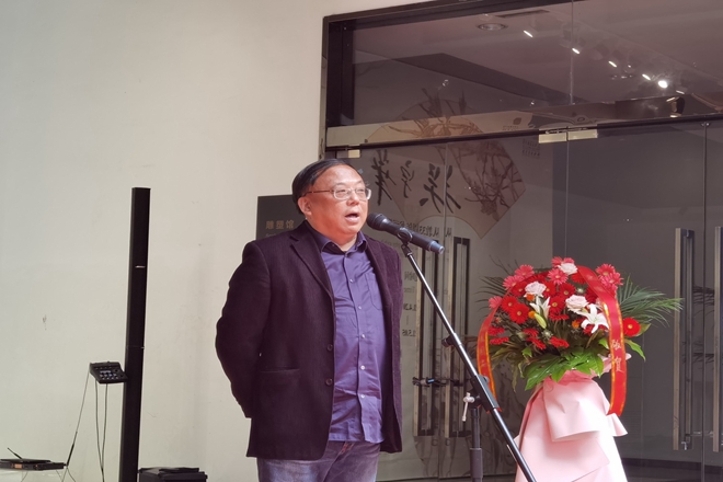接着,吴宇华副教授向参加开幕式的各界来宾表示感谢。他33年的从教之路伴随着祖国和家乡日新月异的变化,33年是一段成长历程,更是自我突破、自我超越的新起点。笔墨当随时代,作为艺术家应该用自己手中的笔为人民创作具有“精气神”的作品,他将继续努力攀登艺术之路,期待看到更多更美的风景。