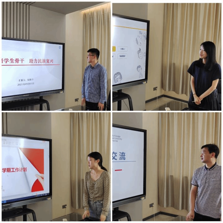 纪欣卓以“精培学生骨干,助力民族复兴”为主题,结合自身工作以青年群体中的学生骨干为研究对象,分析了当下学生干部存在的问题,并从外部环境和自身因素进行剖析,提出了基于“PDCA”循环控制方法的学生干部培养体系。王唯围绕高校共青团劳动育人工作进行分享,她提出依托高校第二课堂探索构建新时代中国特色社会主义劳动教育体系,为学生搭建常态化劳育平台,帮助广大学生实现树德、增智、强体、育美、铸劳。张凌雁回归新生辅导员工作初心进行思考,她认为,辅导员应当成为学生思想工作的舵手、专业老师教学的帮手、学生学习的助手,应与学生同心同行,制定后疫情中的学习计划。金钰锁围绕新生工作进行分享。他从思政教育的内容阐释、平台搭建等方面分享了思想政治教育的途径与成效,从制度建设、工作举措、日常落实、举办活动等方面分享了学风建设与日常管理的经验做法.