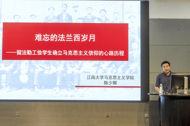 马克思主义学院青年教师陈少卿以《难忘的法兰西岁月》为题开展党课第一讲,讲述了20世纪初在旅法留学的美好设想和残酷现实的背景下,来自不同阶层、出于不同目的的留法学生们产生了不同流派,最终在留法勤工俭学生中锤炼了一批革命代表,培养了大批研究马克思主义的先驱的生动事迹。最后陈老师总结,实践证明了马克思主义的正确性,理论提供方向,生活提供决心,信仰需要经历实践的磨砺才能真正确立。在座同学听之心神激荡,深受启发,在热烈的掌声中,第一讲党课圆满结束。