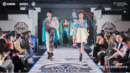 《时尚设计工作坊》课程模拟服装企业与品牌中“工作坊”模式着眼于市场,调研和总结未来服装要素的流行趋势,学习并模拟规划新一季的产品方案,体验成衣从调研设计到生产展示的完整流程。通过与王者荣耀的合作中,引导学生拥抱国潮,分析总结中国传统服饰特点,思考与日常服装结合的合理性。