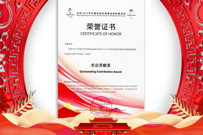 全力协助北京冬奥组委圆满完成北京2022年冬奥会和冬残奥会制服装备视觉外观设计征集任务,被授予“杰出贡献奖”。