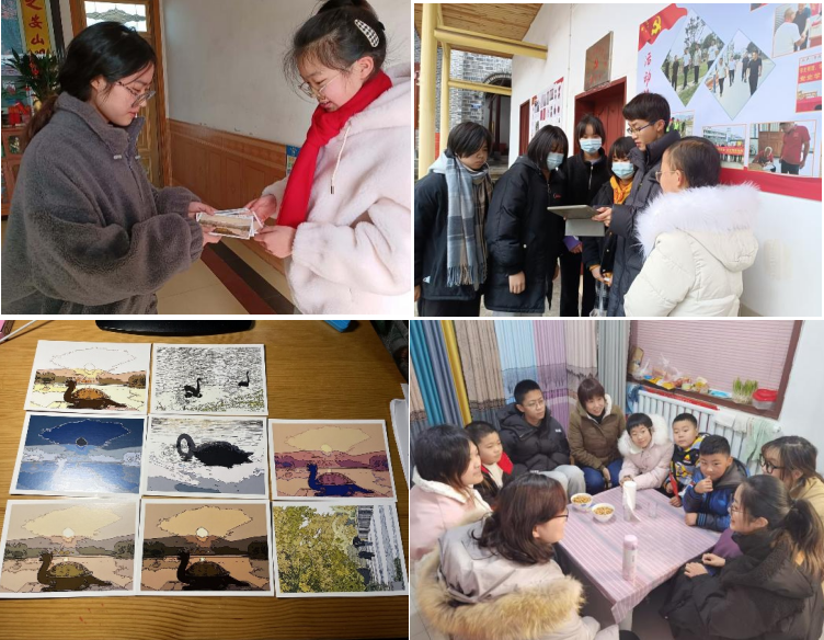 林简同学走访村里的困难学生家庭,根据同学们的实际情况讲解资助事宜,以亲身经历表明资助政策的重要性;倪悦进入困难家庭宣传走访,鼓励其树立生活的信心,以积极乐观的心态去面对生活。为了能拉近与家庭经济贫困孩子们的距离,她根据校园里的景色与地标建筑,设计了八张明信片,赠予同学们,以期帮助他们更好地认识h动画