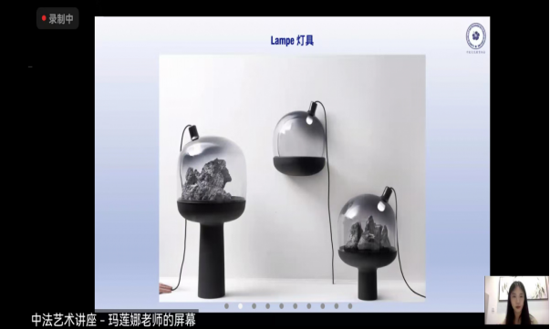 本次分享会的讲师玛莲娜老师曾参与该校在中国的艺术和全球化项目,带领《从模块到图案 / From module to pattern》设计项目、《微观世界/ Micro-worlds 》及《 多宇宙/Multiverses 》等当代艺术项目,在世界各地成功举办多次主题展及艺术活动,并多次参与国际赛事并发表学术文章,是一位有造诣、有影响力的法国艺术家与教育工作者。在此次分享会中,她分别从设计和学科的关系演变、科学普及、材料设计科学研究、跨学科融合以及法国高等艺术院校的教育特点等方面与我院师生展开了分享与讨论。20世纪末以来,艺术成为了科学与社会的纽带,是科学成果的解释与转化器,通过艺术的呈现,科学进一步走向大众。从盖尔.盖比耶&斯蒂芬妮.维拉德收藏于巴黎蓬皮杜中心的系列设计品《黑洞物品》所展示的吸收、吞没、溶解的概念,到牛奶实验室里用废弃过期牛奶创造出的可溶性环保餐具,再到《彩色的细胞工厂》里制造的可替代石油化工染料的可再生颜色等,分享会解读了科学与艺术的内在关系,提出了彼此借鉴、融合、促进、发展的创新路径。
