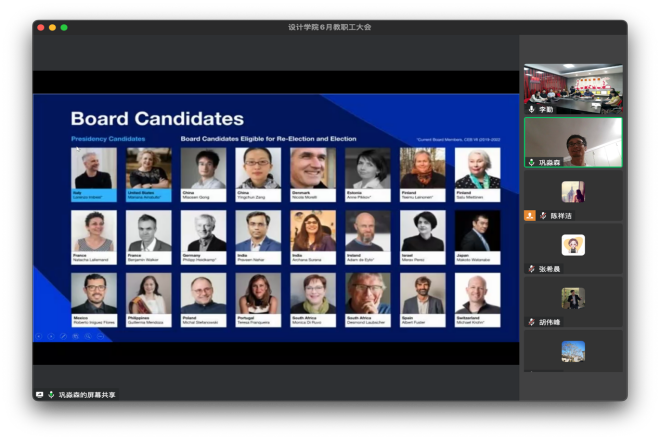 会上,学院党委委员巩淼森副教授分享了成功当选国际设计艺术院校联盟执委的申请过程,他表示,此次当选是学院国际交流合作的重要突破,将立足国际平台,讲好中国故事,发出中国设计声音。