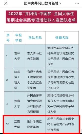 “红设青年团”连续两年入选团中央社会实践专项,团队将于8月底赴井冈山开展专题实践活动。