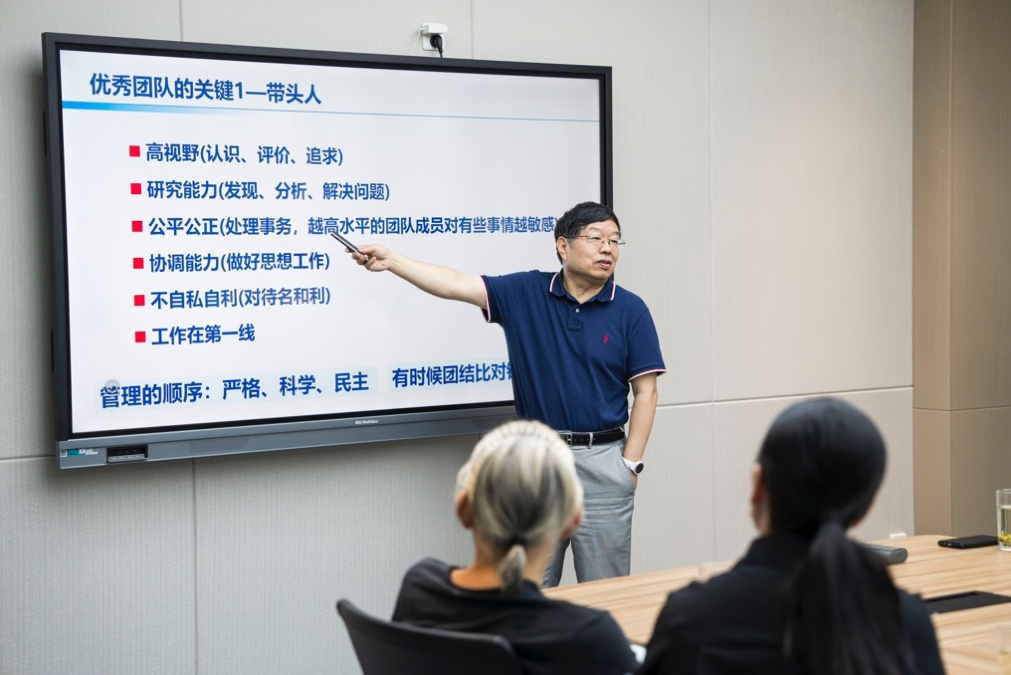 陈坚院士首先带领大家参观了研究院的实验室、办公环境,介绍了研究院成立的主要背景和概况。随后,陈坚院士就如何建设优秀的团队做了《知行合一守正创新》的专题分享。陈坚院士介绍,宜兴研究院针对主要研究方向引进了以h动画