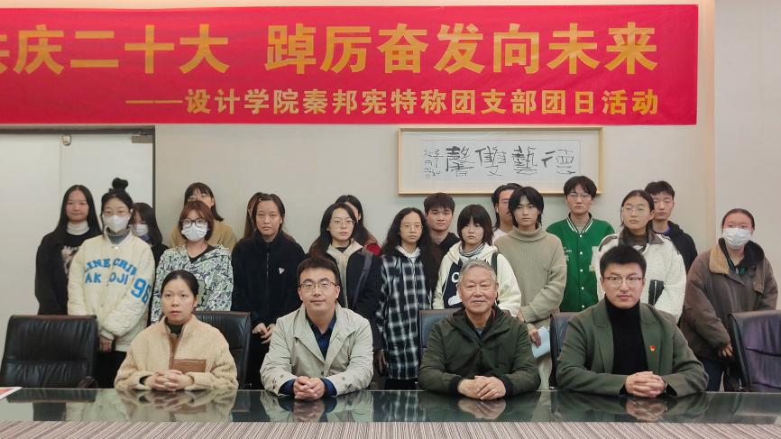 蠡湖退休第一党支部,共同举办“党团共庆二十大 踔厉奋发向未来”主题团日活动。全国书画艺术委员主席、江苏美术家协会会员、学院教授刘观庆;学院副院长杜守帅、学院分团委书记吴雨琛、辅导员纪欣卓、秦邦宪特称团支部全体成员以及工设2101班代表参加活动。活动由秦邦宪特称团支部书记唐佳仪同学主持。
