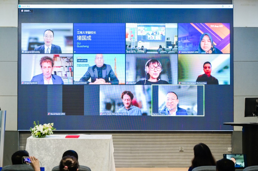 副院长杜守帅、曹鸣、廖曦,马来西亚理科大学美术学院院长Sarena Abdullah、战略发展部主任Muhamad Sabri bin Said,巴黎高等视觉h动画