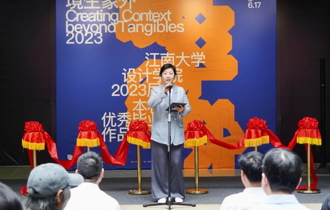 院长魏洁致辞。魏院首先介绍此次展览分为三个批次,第一批为视觉传达、环境艺术、整合创新专业,第二批为产品设计、工业设计和数字媒体艺术专业,第三批次为公共艺术、美术学专业,整个展览周期为5月26日至6月17日。此外,服装专业此前已如期举办了“鼋梦·共生”毕业作品秀。魏院强调,本次毕业展的主题是“境生象外”,用作品的有型表达,创造“象外之象”,展现设计创意的无限可能。该展览既是2023届同学们大学四年专业学习成果的集中展示,也是对h动画