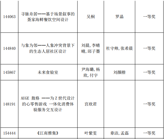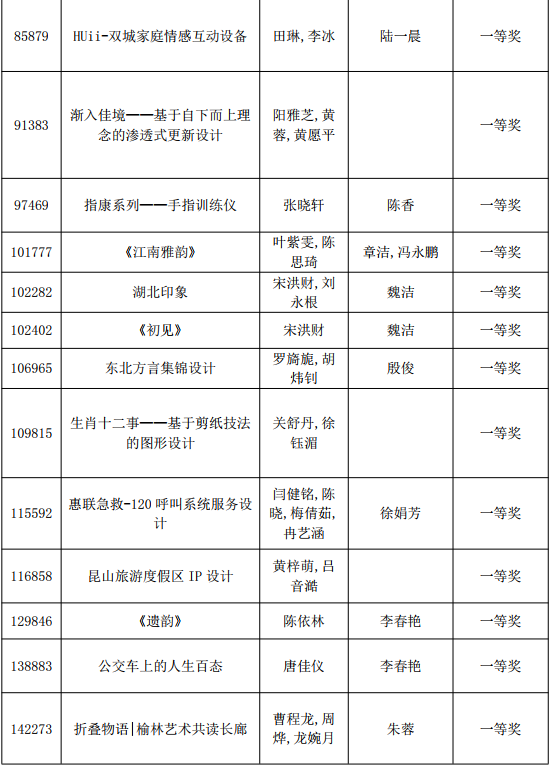 一等奖获奖作品名单