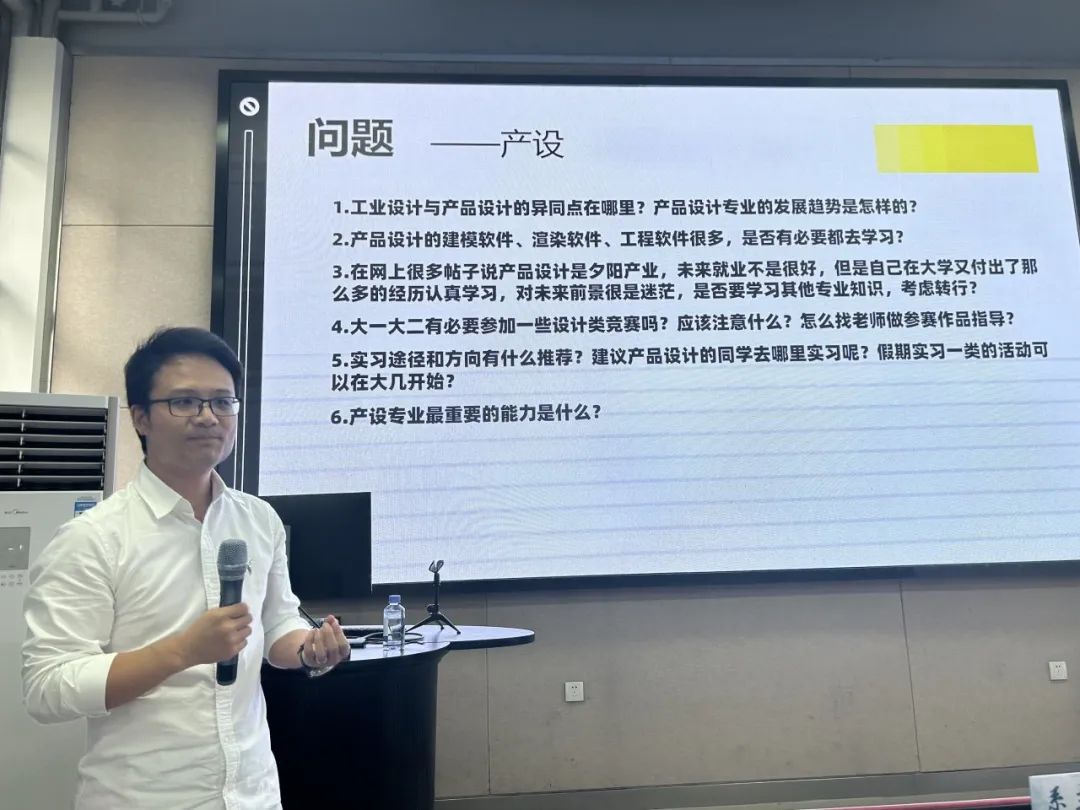 活动初,两位老师首先上台讲话,表达了对同学们的殷切期望,为同学们的专业学习答疑出招。老师表示,我们在大学期间要正确地认识自己,计划方案,调整思路,平时多多看书看展,开阔自己的眼界,不要一条路走到黑,要去发现自己的不同可能性。