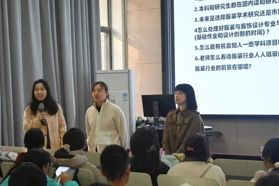 A104顺利举行,服装系主任柯莹老师、副系主任唐颖老师、邢乐老师莅临现场,服装与服饰设计专业的黄梓萌和服装设计与工程专业的蒋阗行为大家进行经验分享和答疑解惑。现场气氛活跃,同学们热情积极,展现出设院学子钻研向上的学习热情。