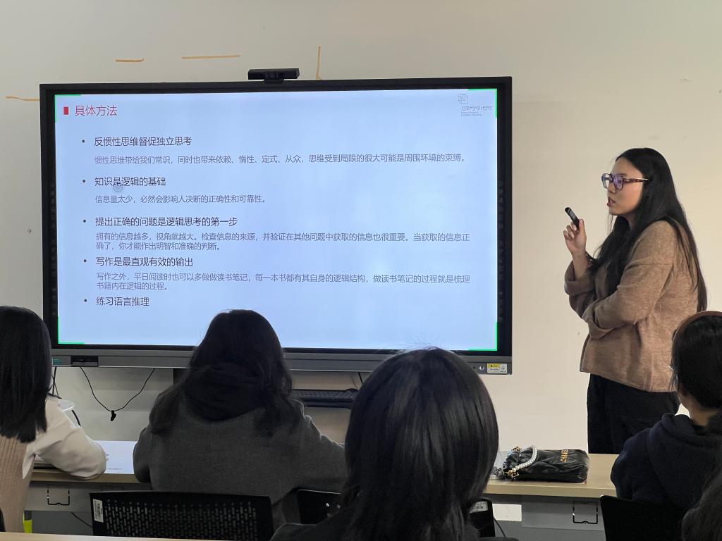 分团委副书记、研究生党建指导老师曹淑慧老师对本次“交汇”硕博分享会活动给予了高度的认可,并对两位优秀的博士代表分享的内容高度肯定,指出在研究生阶段正缺少生涯规划和经验分享来明确人生方向和研究生生活的安排,希望交互设计党支部的活动能增加影响力,进行校区间的联动,在党建+专业双重育人方面继续起到模范带头作用。