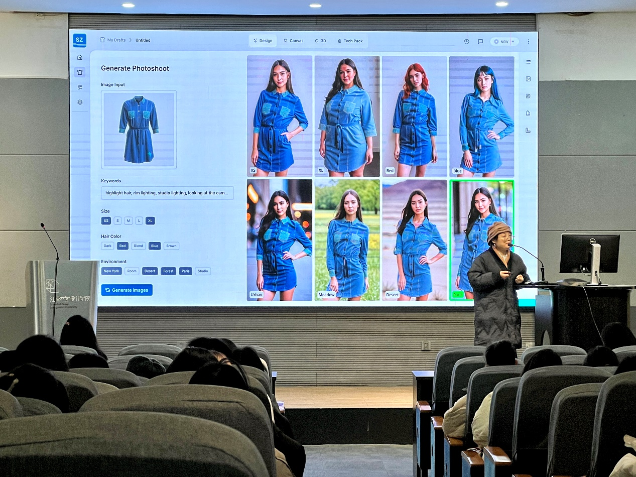 签约仪式后,林燕丽和晏家红分别以“服装的价值创造”和“如何做好AI时代的设计”为主题为服装系师生带来了精彩的讲座,重点分享了传统服装行业面临的挑战和AI新技术为行业带来的影响,并从可持续化角度提出了对服装行业未来发展新趋势的思考和理解。