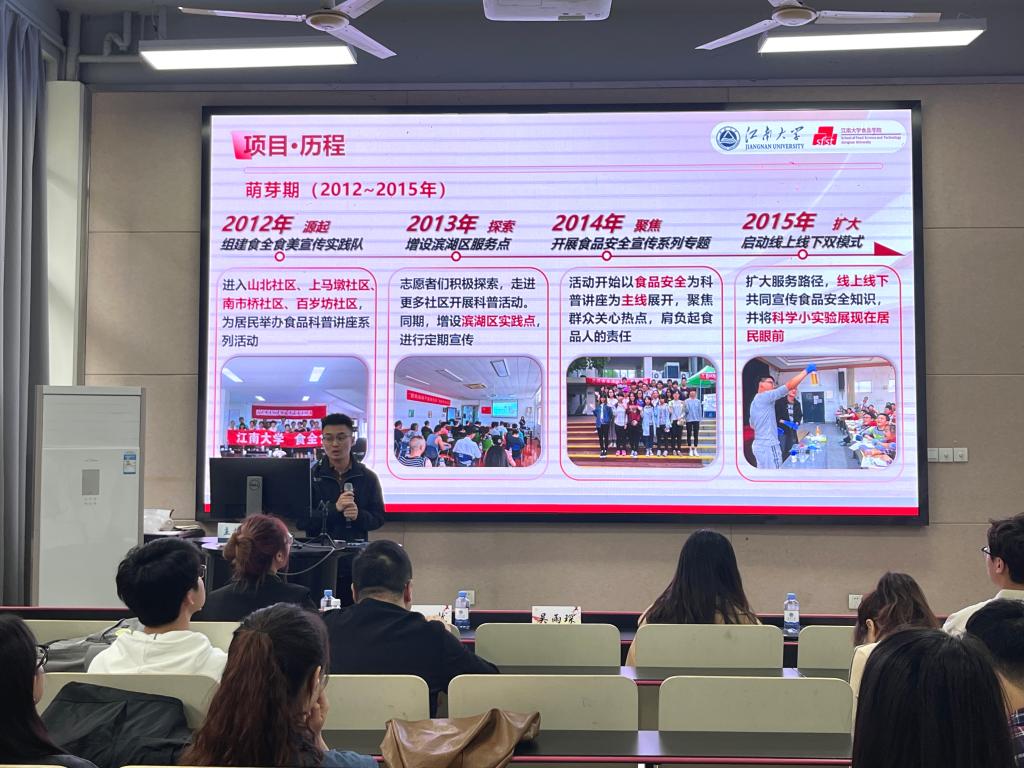 食品安全进社区团队周鹏代表优秀志愿服务团队进行事迹分享