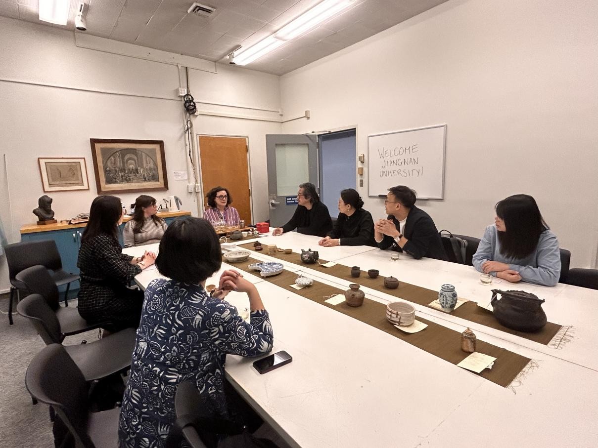 副院长牛犁教授的带领之下在加利福尼亚大学戴维斯分校(University of California,Davis)成功开展为期一周的“江南风格的民生智慧与设计——传统与现代”主题艺术展览。本次展览在UCD引起不小的轰动,得到校方的高度赞扬与肯定,期间代表团还受邀与UCD负责国际交流工作副校长Joanna Regulska女士、负责国际合作事务教务长Michael Lazzara博士以及负责全球教育与海外学习项目国际办公室主任Nancy Erbstein博士交流会谈,一行人还参观了UCD全球茶文化研究院并与创世人Katharine P. Burnett博士就中国茶文化与茶器展开亲切交流。