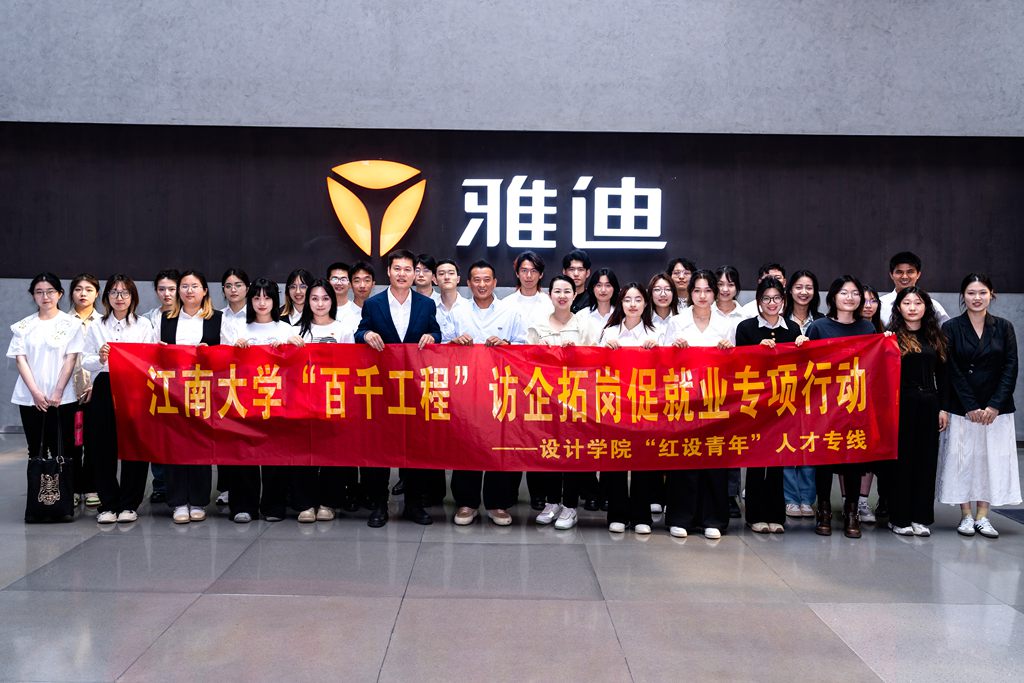 党委副书记副院长江琳娜、副院长胡伟峰、辅导员刘鑫、张凌雁及28名本科学生赴雅迪集团,雅迪集团工业设计总监程煌仁、人力资源管理中心总助俞萍、全球产品及技术HRBP部长陈芳芳、人力资源管理中心招聘部长蔡陈樱等热情接待了师生一行。