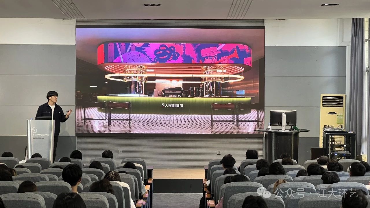 演讲嘉宾斗西先生首先提出“什么是‘Z世代’的设计”“什么是‘Z世代’的设计师”“‘Z世代’有什么特殊之处”三个问题,并围绕讲座主题展开了精彩的讲授。他为师生们带来了由斗西设计完成的不同规模的四个经典商业空间案例:“人民咖啡馆”“另有其物”“KOKORO咖啡”和“青山美术馆”,围绕设计理念构思、设计方案生成、设计心得体会等多方面展开详细介绍。斗西先生指出商业空间设计是一种“投资型”设计,商业设计师的天职是需要解决甲方的商业问题,而非自我创作。“Z世代”的消费场景不可或缺的要素就是传播性,所完成的设计不仅需要商家宣传更需要通过消费者将其传播。演讲最后,斗西先生公布了讲座开始时提出的三个问题的答案。他认为,能让Z世代人群共鸣,并以共鸣“为荣”的设计可以称为“Z世代”的设计;“Z世代”的设计师不但要具备设计师的通用能力,还要掌握“Z世代”的特殊设计语言;“Z世代”的特殊之处在于对设计师“一视同仁”,生活即是灵感,女生能顶2/3边天。在演讲结束之后,同学们提出了在学习、创业及未来发展中的一些困惑,并得到了斗西先生的一一解答。通过斗西先生的讲解,同学们对品牌策划与空间设计的内涵有了更深层次的思考,对形式美学与功能适用的兼顾、空间的弹性与多义性、空间设计的商业价值、品牌的调性与空间设计、商业逻辑与运营行为等内容都有了更深刻的理解。精彩的讲座引起了同学们的极大兴趣,赢得了师生的一致好评。
