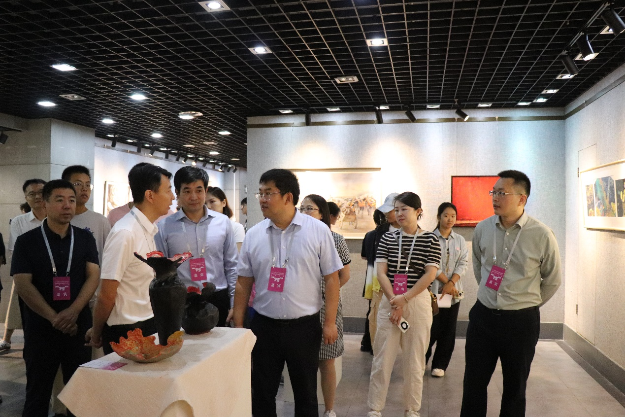 最后长三角设计学科党建高校联盟各高校成员参观“七十五载风华颂,墨启创设新征程”——庆祝新中国成立75周年师生作品巡展,本次巡展是长三角设计学科党建高校联盟单位落实“党建+美育”的生动实践。活动以反映时代风貌、彰显时代精神为创作指向,共征集长三角地区10所高校艺术与设计学科师生创作的书画、摄影、动漫、文创及雕塑等门类艺术作品130余件,其中h动画