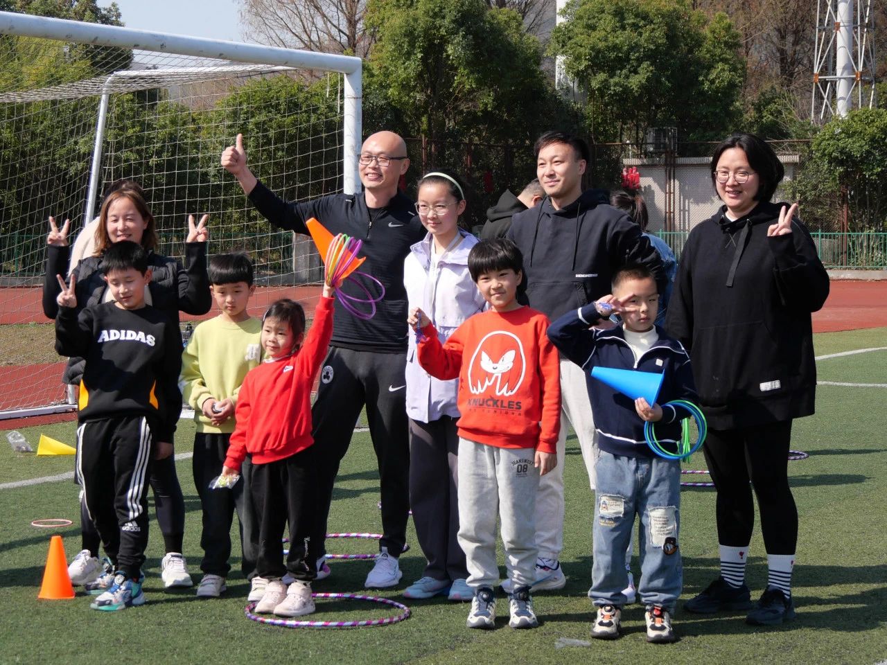 老师们也跃跃欲试,积极参与教师项目,笑声与同学们的助威声回荡在操场上。小朋友们也加入亲子项目,与家长一起体验这场“大朋友”们的运动会。