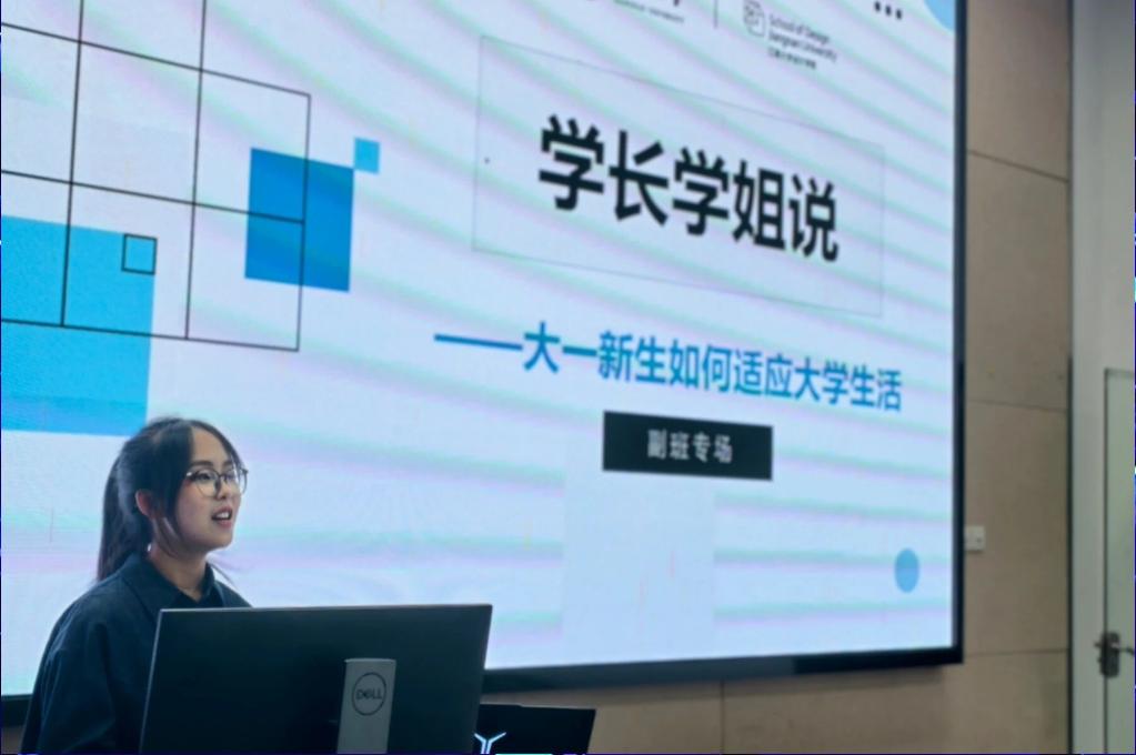 学生会学促部精心策划的"学姐学长说"新生适应专场在温馨氛围中拉开帷幕。来自产品设计、视觉传达、环境艺术、公共艺术四个专业的优秀副班们齐聚一堂,用真诚的经验分享为初入校园的学弟学妹们点亮前行之路。产品设计2502的副班张泽璇学姐从拥抱白纸期、接纳不完美、坚持长期主义三个方面分享自身经历并总结经验。从刚入学时的迷茫无措,到通过持续练习获得认可,这是她不断锻炼能力,开发全面自我的过程。她用自己的经历告诉大家:"找到自己的方向和节奏,就算慢一些也终会到达。"