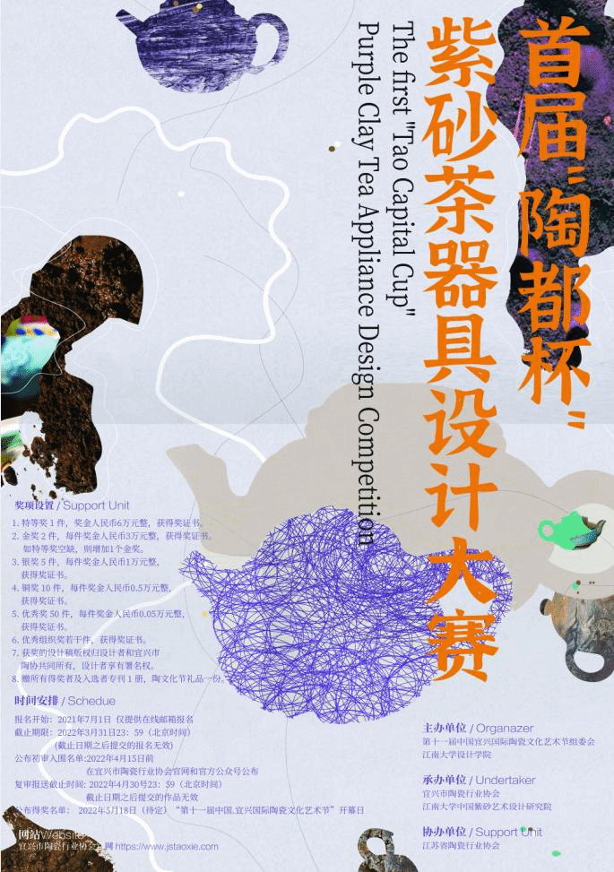 参赛设计稿与参赛报名表发送到官方指定邮箱:[email protected]。邮件主题标注“作者姓名+首届“陶都杯”紫砂茶器具设计大赛”。参赛登记表见附件。
