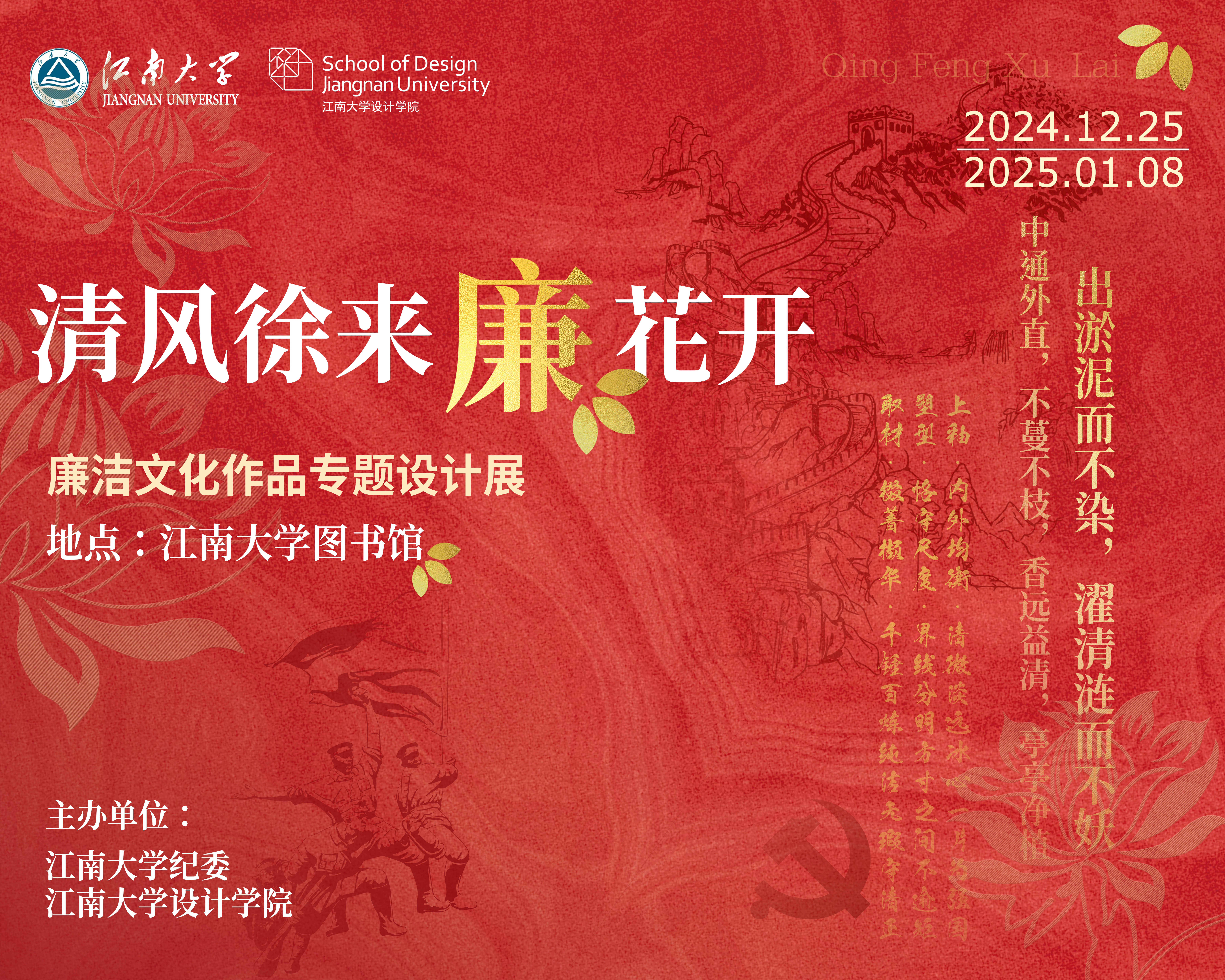 持续举办“清风徐来‘廉’花开”廉洁文化作品专题设计展。目前第二期正在如火如荼进行中。