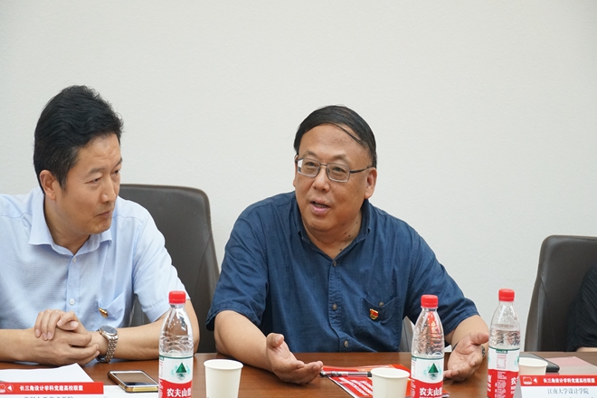 党委副书记刘雯玮、苏州大学艺术学院党委副书记张洁、上海交通大学设计系主任董占勋等分别结合各自学院开展的党史学习教育工作进行了分享交流,并结合设计艺术学科的学科特色、师生专业特长、学生思想特点等讨论交流了如何在设计学科发挥党建引领优势和学科特长,创造性开展浸润式党建工作和学生思政工作。