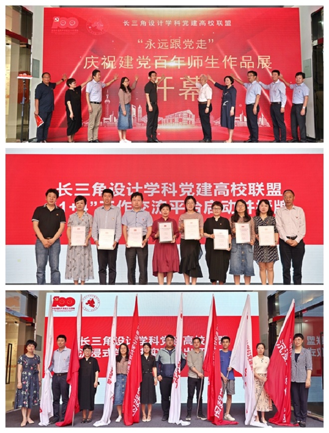 6月11日上午,长三角设计学科党建高校联盟“永远跟党走——庆祝建党百年师生作品展”开幕式在h动画