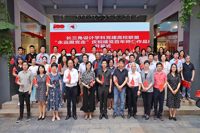 联合东华大学、上海交通大学、同济大学、南京艺术学院、苏州大学、中国美术学院、合肥工业大学等7所高校设计类学院,共同举办长三角设计学科党建高校联盟“永远跟党走——庆祝建党百年师生作品展”。展览以“百年奋斗新征程,坚守初心再扬帆”为创作主题,共收到8所高校100余件师生艺术作品。作品以反映时代风貌、彰显时代精神为创作指向,融思想性、艺术性、教育性为一体,从多维度的视角和多样化的形式,展现中国共产党的光辉历程和不朽功勋,展示祖国日新月异的发展成就,抒发了广大师生对党和人民的无限热爱,对实现中华民族伟大复兴中国梦的坚定信心。