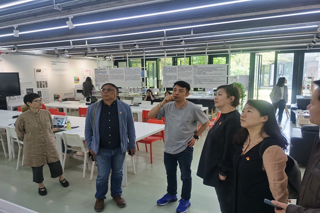 随后,一行人参观了中国美术学院设计艺术学院教学空间、实验室空间、项目空间以及办公空间等,访问了杭州亚运会艺术设计研究中心、设计趋势国际工作站等,同平面设计系、以及综合设计系的教师进行了沟通交流,深入了解了设计艺术学院在专业建设、学生培养、专业团队建设及设计项目开展等情况。一行人纷纷表示,此次学习调研活动收获颇丰,从党建经验做法到学科人才培养及专业教学和公共空间使用等都深受启发。