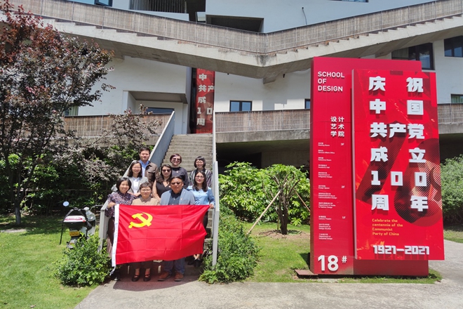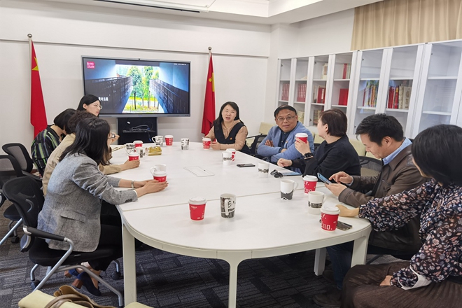 一行人首先与中国美术学院设计艺术学院党总支书记陈燕屏、党总支副书记刘超群、综合办主任兼职组织员唐榕老师等交流了近期党史学习教育等相关情况,就如何结合专业特色开展党史学习教育进行了深入探讨,听取了与中国美术学院设计艺术学院在开展专业特色党建活动中的先进经验,并进行了支部工作交流;结合长三角设计学科党建高校联盟即将开展的“百年奋斗启征程,坚守初心再扬帆”庆祝建党百年作品系列展览的作品征集和展览的具体细节进行了进一步沟通交流。