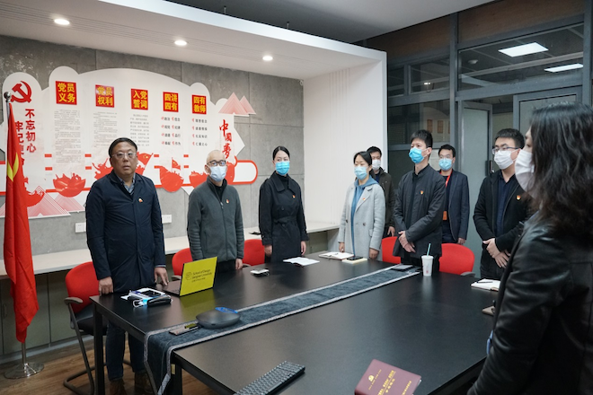 党委召开了全院教职工党员大会,会议以线上线下相结合的形式进行。学院老院长过伟敏教授、院党委委员、教工党支部书记在党员之家----初心苑参加会议,其他党员在企业微信群同步,共100名党员参加大会。会议由院党委书记邱建平同志主持。