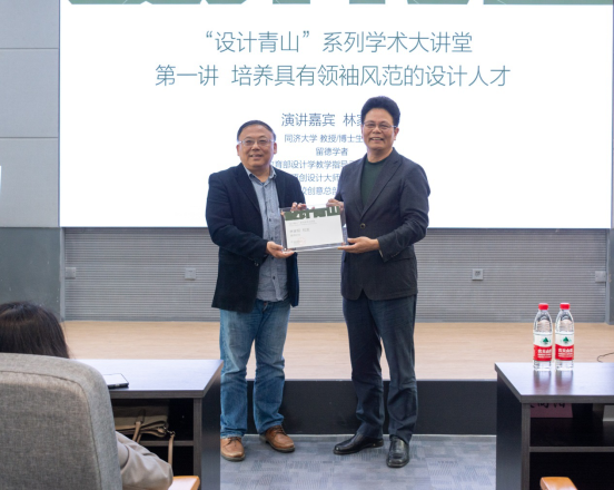 报告结束后,邱建平书记向林家阳教授颁发了“设计青山”系列学术大讲堂纪念证书,并预祝各位学生在将来成为具有领袖风范的设计人才。